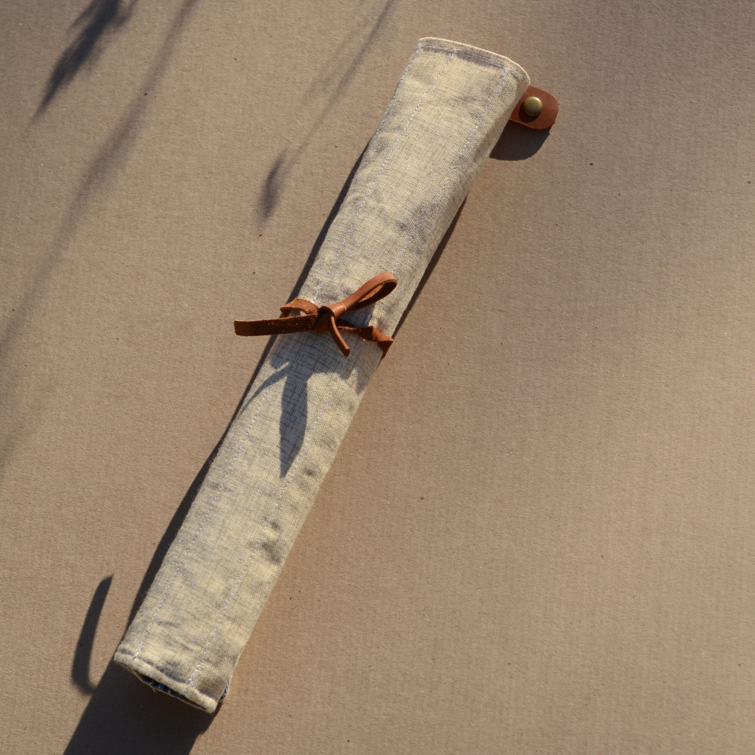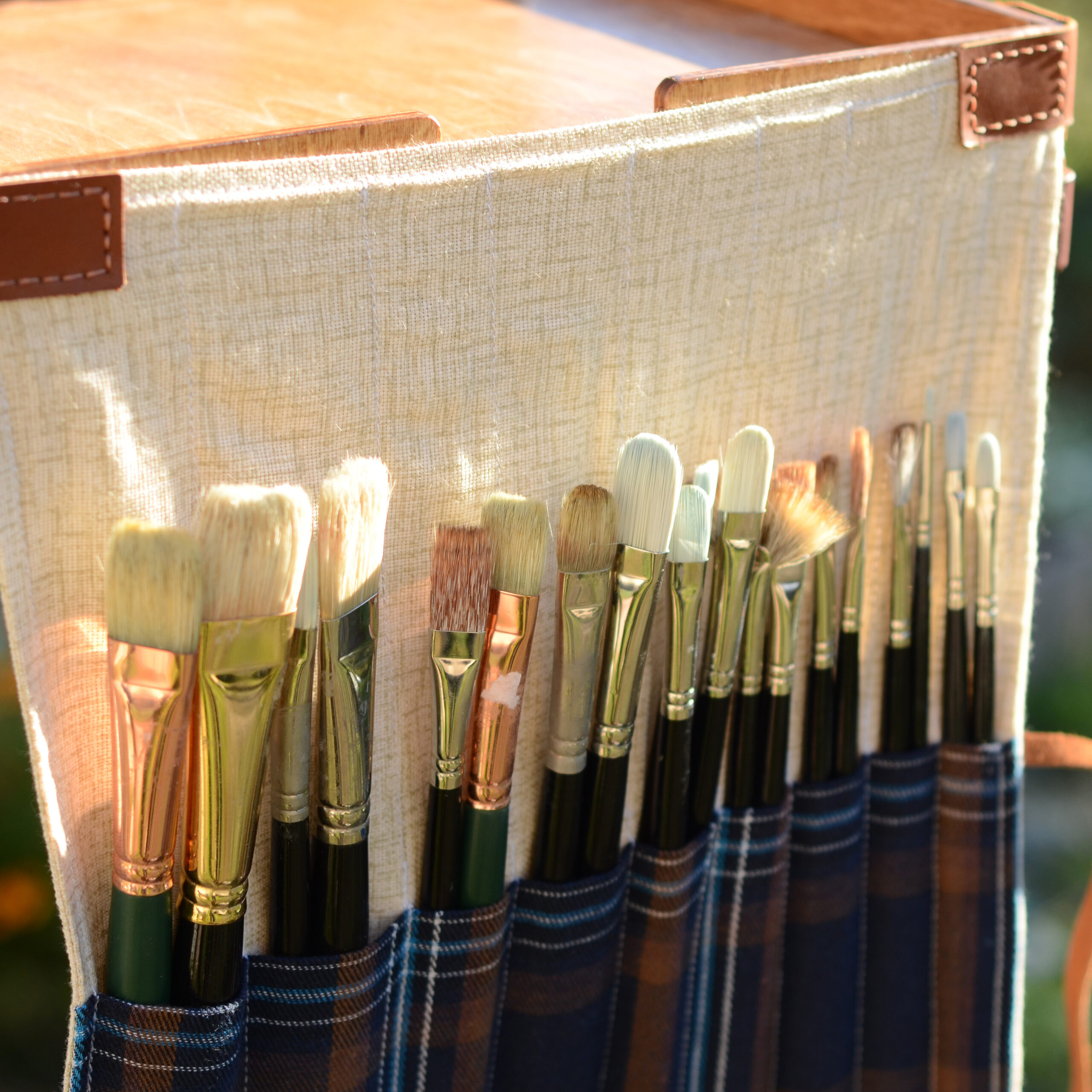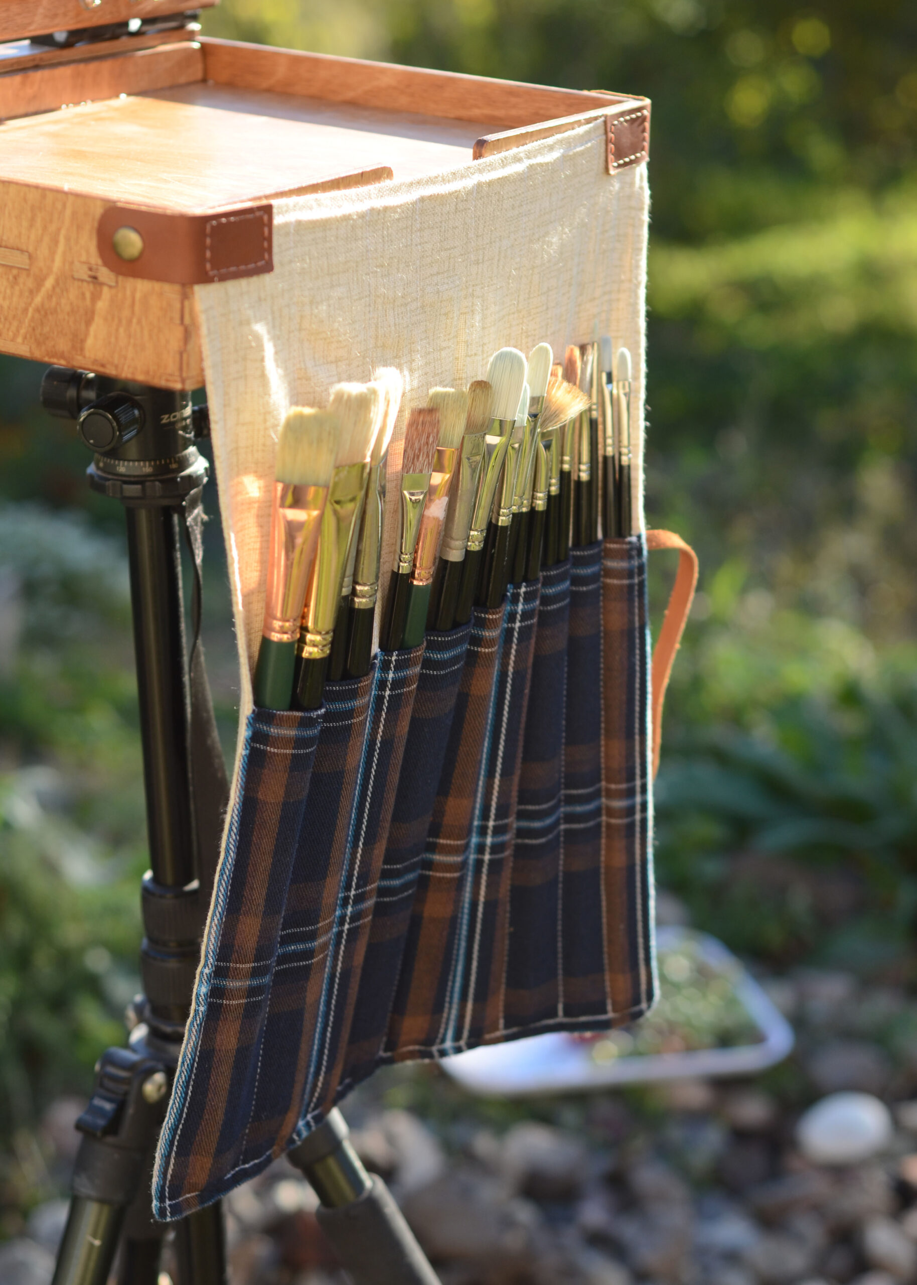 Could be clipped on your pochade box with buttons. Made of cotton fabric with genuine cowhide leather parts.