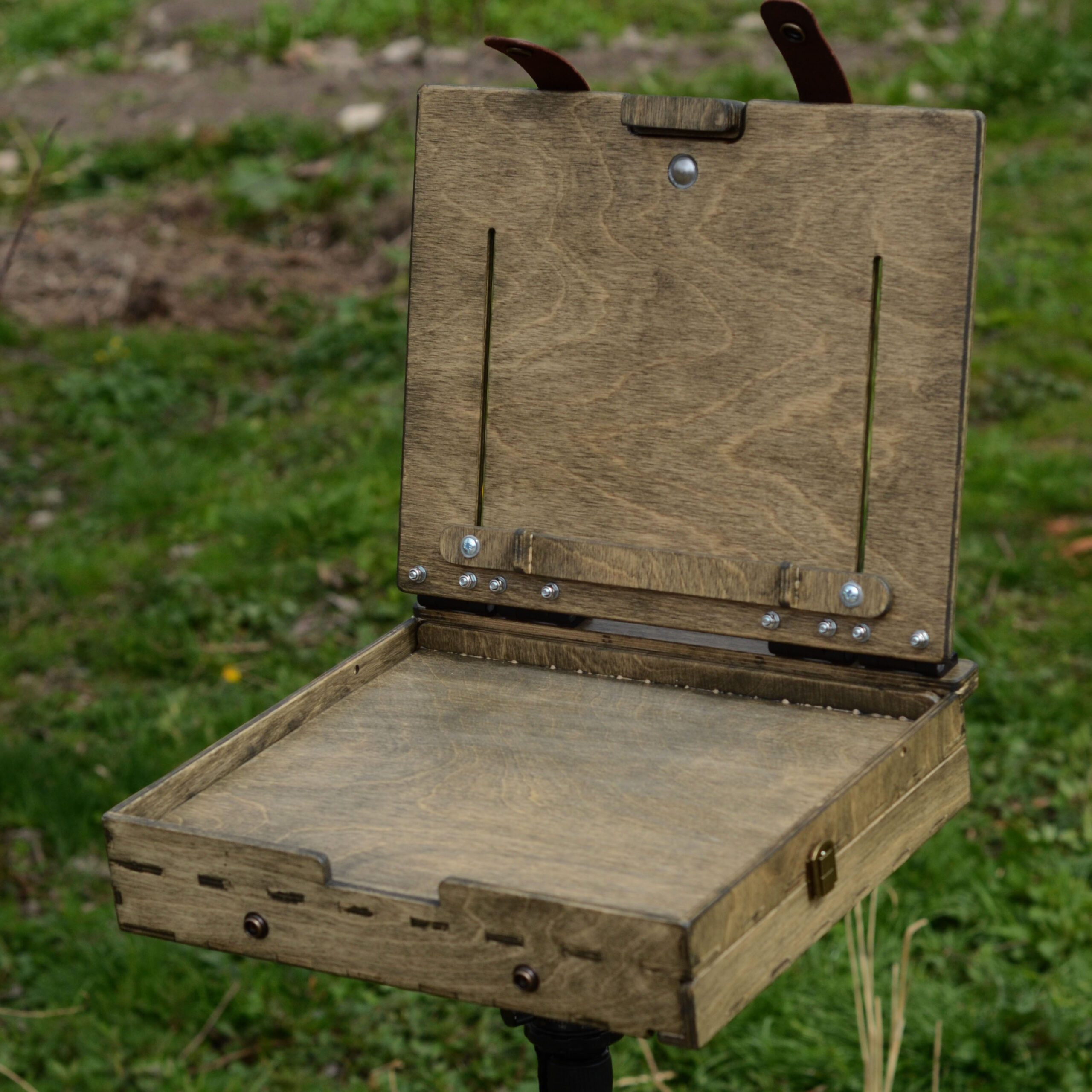 The box is made of stained birch plywood and finished with varnish suitable for outdoor use.
