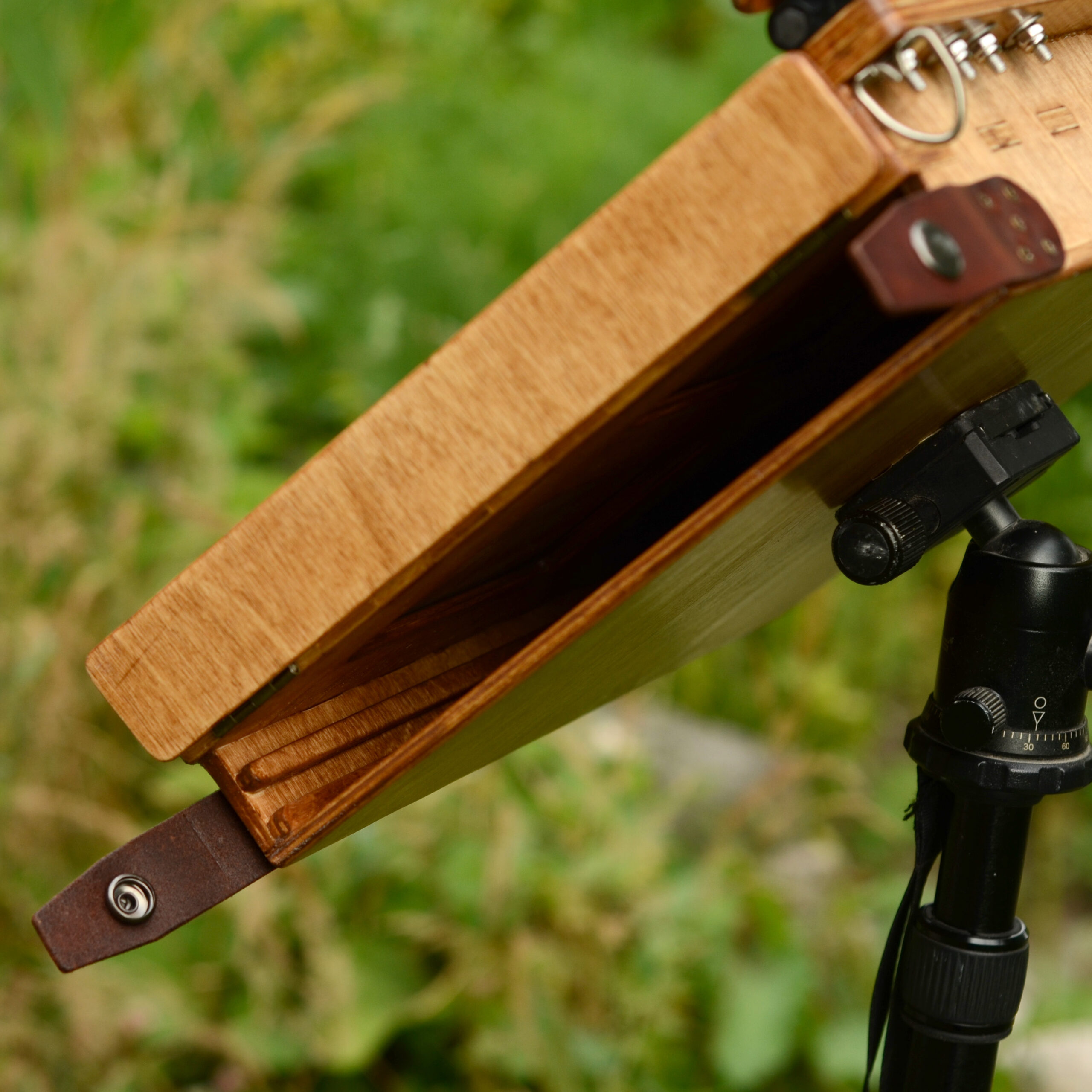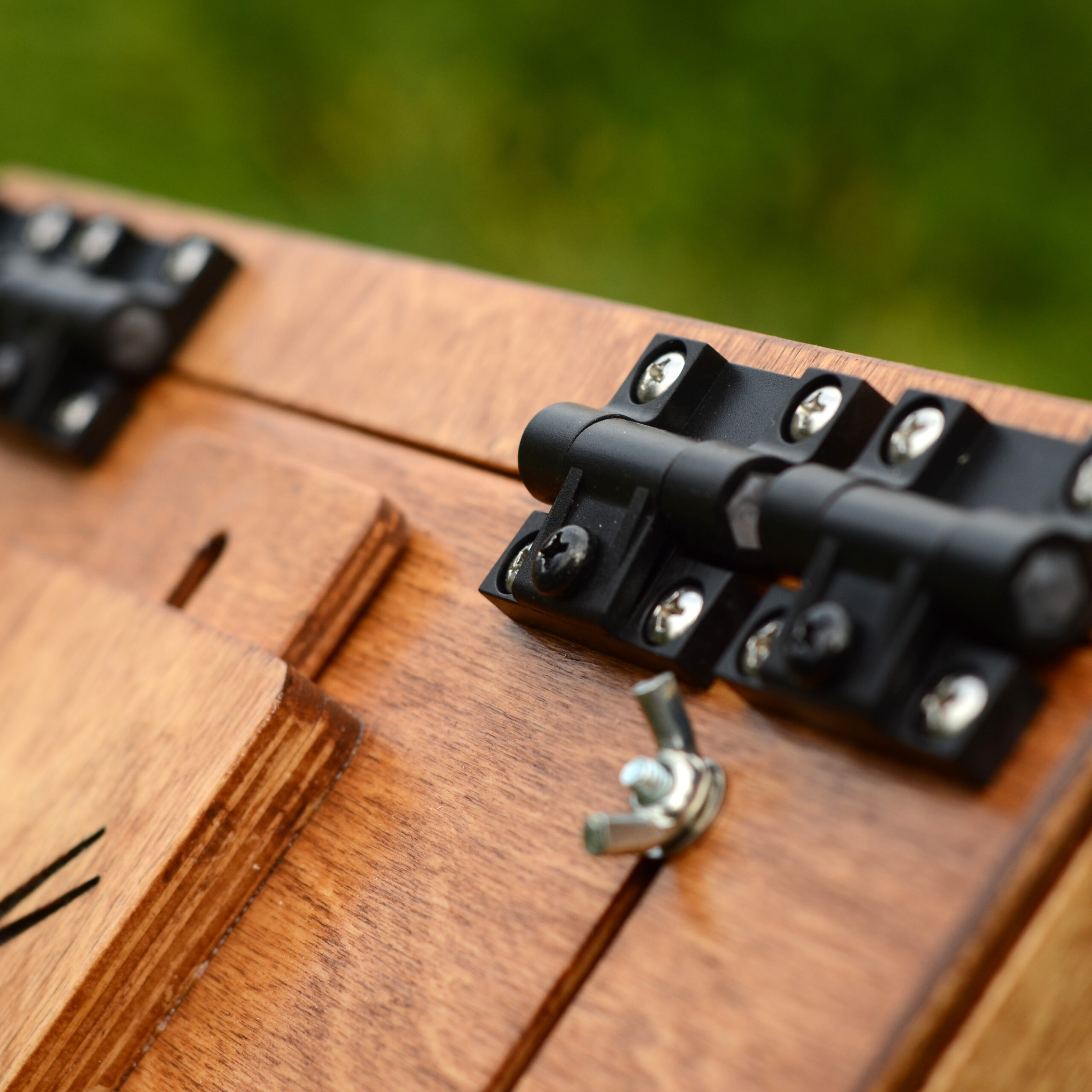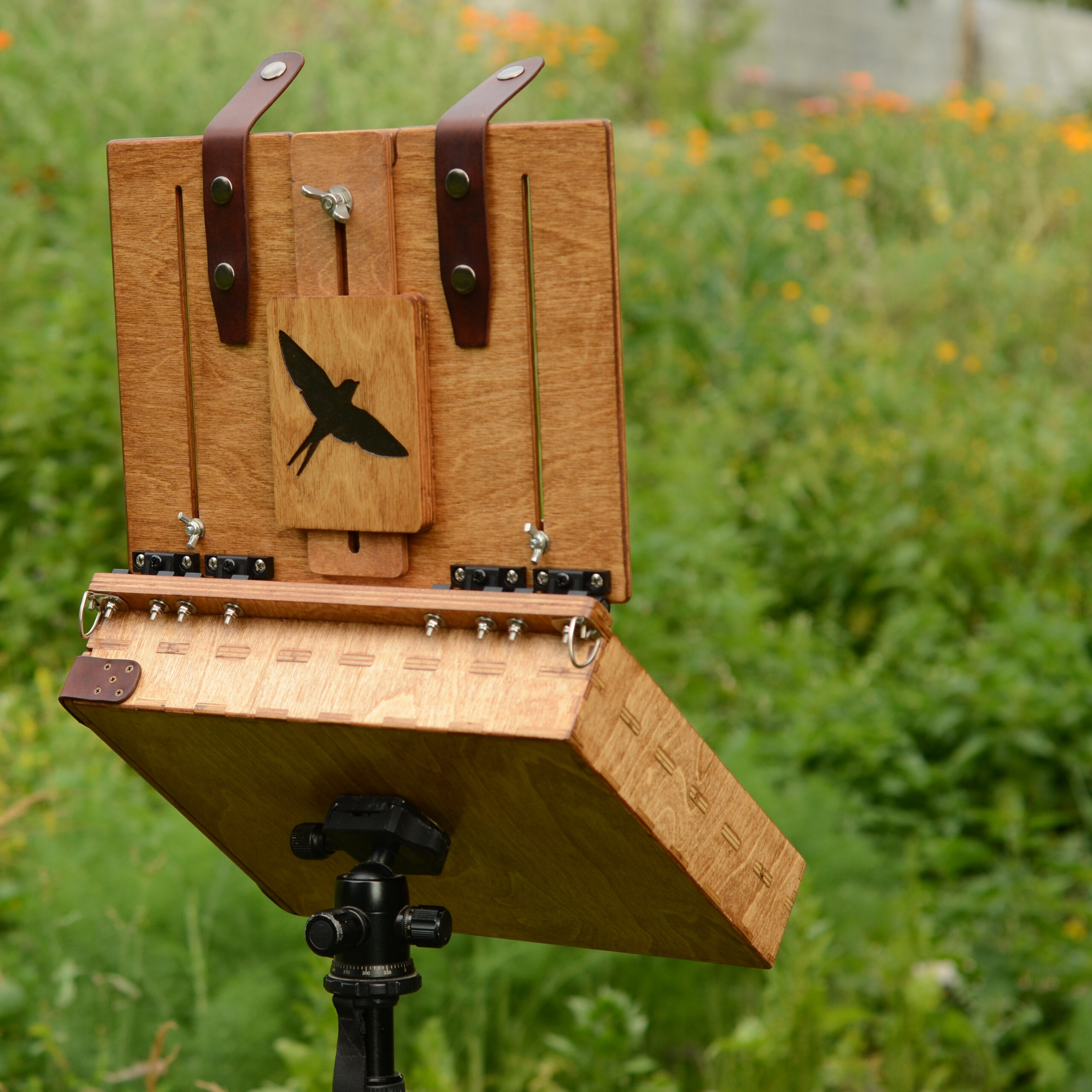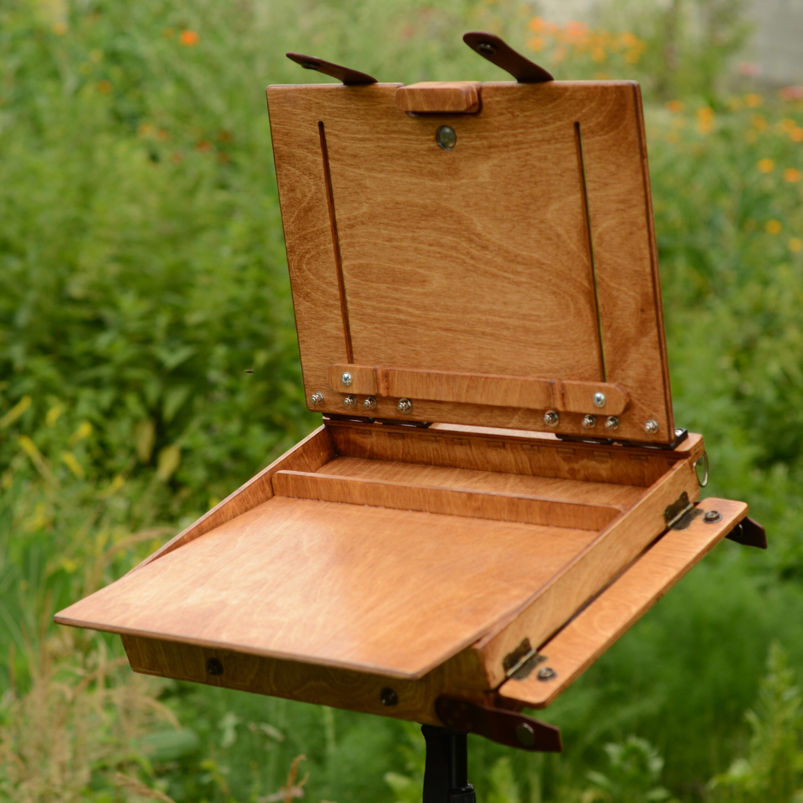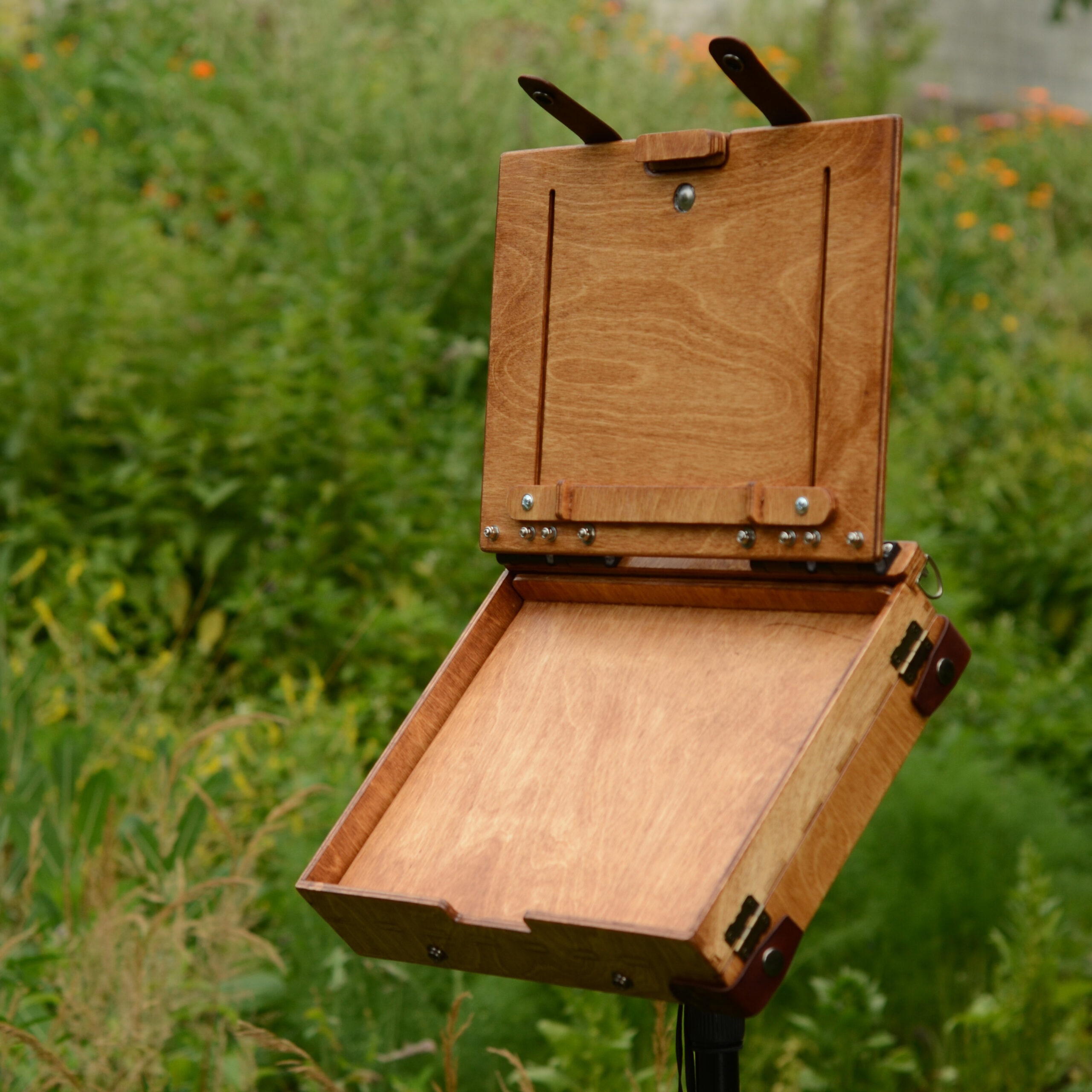 The box is made of stained birch plywood and finished with varnish suitable for outdoor use.